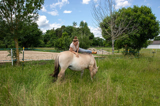 Weil ich wusste, dass sie keiner kaufen würde und ihr nur eine Zukunft, und zwar die in die „Wurscht“ offenstand, behielt ich sie, woraufhin meine Reise zu mir selbst begann. Holly gab mir jede Antwort, ungeschönt und klar, auf jede meiner Handlungen. Viele Wege taten sich auf. So wurde ich Hufpflegerin, weil ihre Hufe immer schlechter wurden und ihr Körper brauchte viele alternative Anwendungen wie Kräuter und Öle. Leichte und unkomplizierte Ausrüstung, die nie unsere körperliche Verbindung trennte. So wuchsen wir zusammen und entwickelten uns weiter.